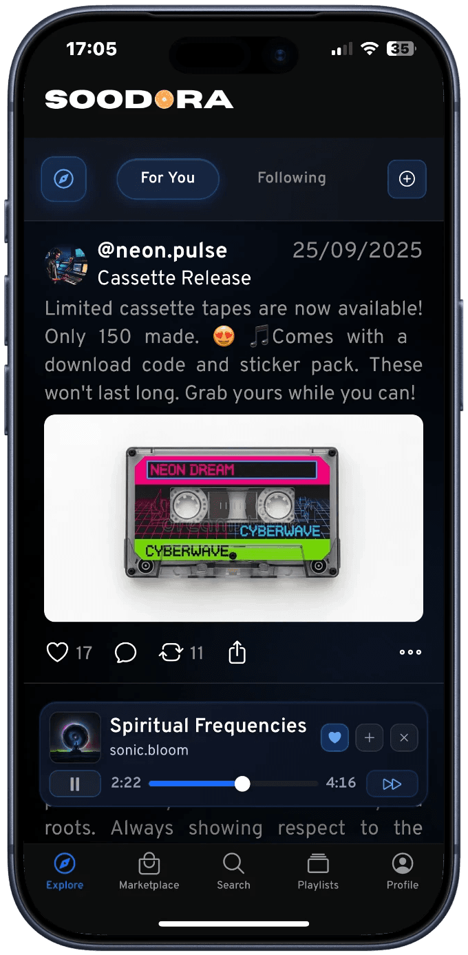 Le nouveau lieu pour les artistes émergents est là. Découvre des talents avant tout le monde, suis tes créateurs, explore le merch et plonge dans de vrais moments. Soodora est en ligne, viens voir ce qui se passe.